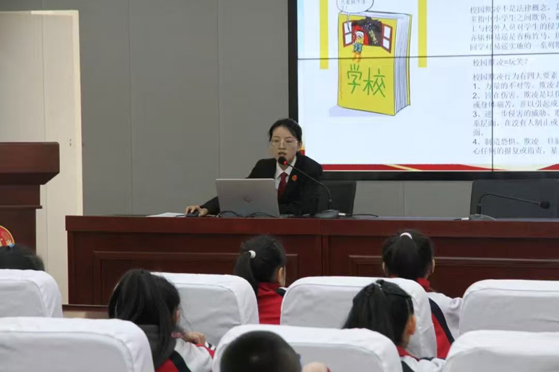 我院以“防范校园欺凌”为主题,为东方红小学的学生们送上一堂生动的法治教育课,课堂上,综合审判庭副庭长陈丽结合真实案例与动画视频,用通俗易懂的语言为同学们讲解了校园欺凌的主要表现形式、危害后果及应对方法,引导同学们勇敢对欺凌行为说“不”,学会运用法律武器保护自己和他人,争做遵纪守法、友爱互助的好少年。